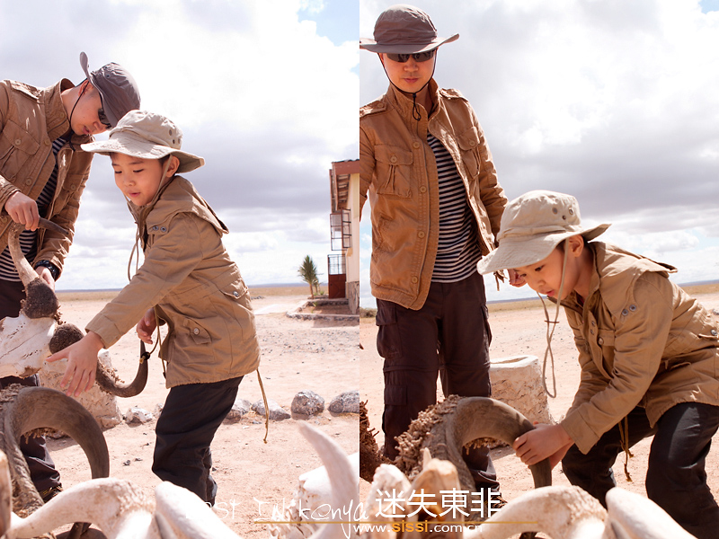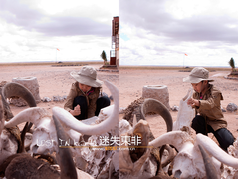 安博塞利有一个小型飞机场,Ben中途带我们去方便。在game drive路上很少看到的动物残骸,在这里倒看到不少。机场一角还用石头摆出“AMBOSELI”的字样。在车上憋了许久的小宝终于可以像这里的动物主人一样自由地行走,好奇地翻动着骷髅头,没有一点怯意。