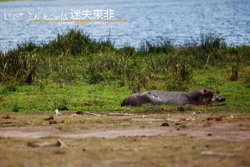 就在Sissi忙于拍摄角马等大路货的时候,后面传来十分微弱的声音,“Hello~~”我们回头,是后面车上的一个小姑娘在和我们打招呼。她指着车的另一侧,“那里有一只狮子。”我们顺着她手指的方向,只看见两百米外的灌木丛,“就在灌木丛边上。”小姑娘看见我们四处游离的眼神,继续提醒。小宝和我立刻拿起望远镜,对准灌木丛的边缘地带,“真的有狮子……是一只母狮子。”我首先发现目标,当然指在我们车上。“我也看见了。”Sissi和小宝紧随我后。我原来一直纳闷,安博塞利这么多食草动物,怎么没有看见一只食肉动物,那不像《金瓶梅》中只有潘金莲而没有西门庆一样无趣嘛。这时,终于放下一颗心来。那只一身灰的母狮子一动不动地趴在灰色的灌木从前,好像街头行为艺术一样,用肉眼看就是灰色背景布中的一个灰色小点而已,若不是后面那辆车的司机好眼力,真的很难发现。