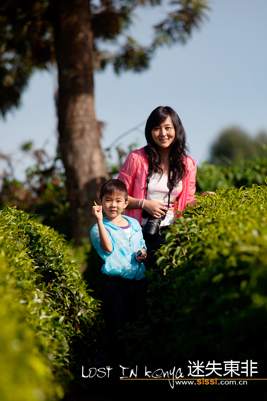 导游随后示范如何采摘茶叶,食指和中指夹住叶根,拇指按住叶子,用力一拽,叶子就下来了。尨尨很兴奋,跟着导游挤进茶树丛,“我要多采些茶叶带给阿公。”全然不顾此“茶叶”非彼“茶叶”的劝告,不过也不枉阿公带他带得这么辛苦。当我们举起相机对着尨尨,处在镜头边缘的导游嗖地缩到了茶树以下。这个帅哥导游十分搞笑,有时当他出现在拍摄的“背景”中时,他会将一小束茶叶举到头顶,扮黑脸白衣茶树。